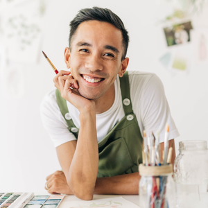 Hi, I’m Danison—artist and owner of Bowtie & Brush. I specialize in live event art for luxury retailers, brands, and weddings, offering on-site watercolor, calligraphy, engraving, and custom personalization. As a queer Filipino-American creative and proud dad, I bring a warm, stylish, and intentional touch to every project. If you see me painting behind a table at your favorite store, come say hi!